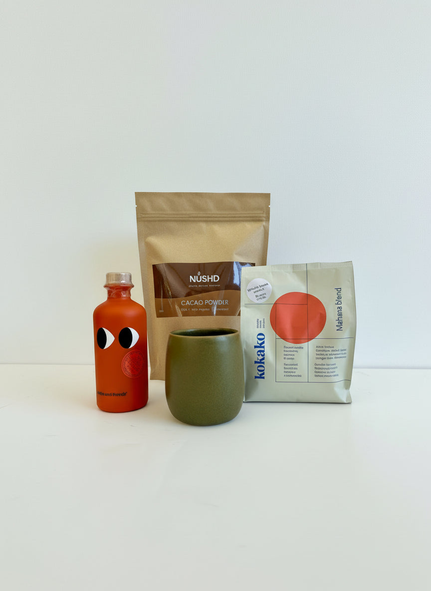 They're paired with our NUSHD organic single-origin cacao powder, offering a rich, velvety profile for crafting a truly delicious and energising cacaoccino or a soothing hot or iced cacao: the perfect ritual to relax, reset and unwind.
